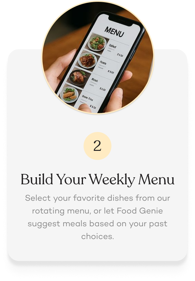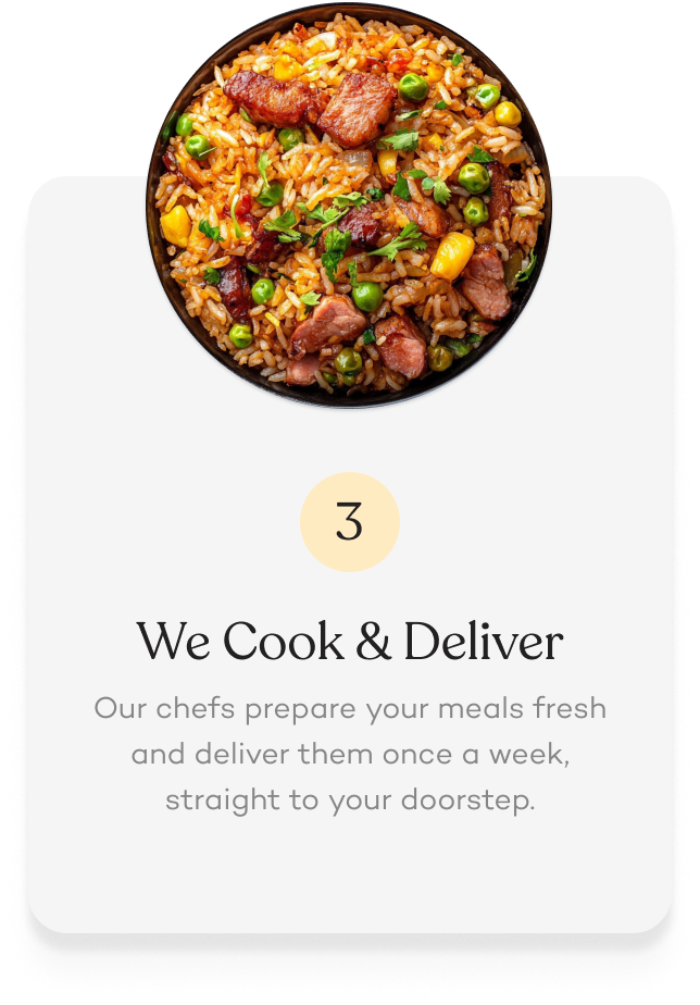Enjoy the comfort of home-style meals without the stress of cooking. Subscribe for weekly plans at a discount, or order single meals to get a taste.